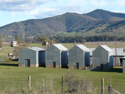 Over the bank holiday weekend we decided to find a decent camp and bed ourselves down- we grey nomads resent the roads being clogged up with selfish working people coming out to the countryside and enjoying themselves. We headed to Myrtleford, another town which started out as a stop on the cattle run then progressed to affluence when gold was discovered. Since the 1880's the rich alluvial flats of the Ovens River were used to grow hops and tobacco, and although the tobacco industry is no more the landscape is still covered with old tobacco kilns- in true Aussie style, you can knock down any building that you no longer want but God forbid that anyone should consider violating a shed!